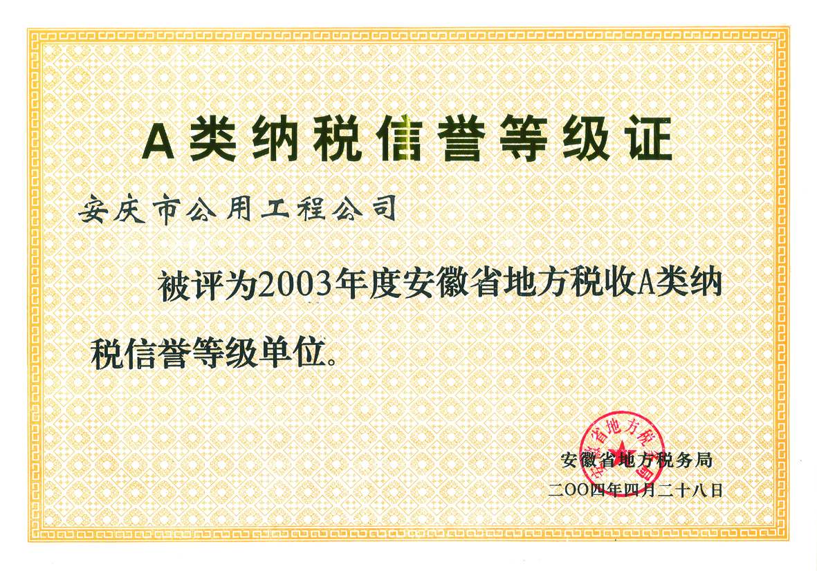 A類(lèi)納稅信譽(yù)等級(jí)證