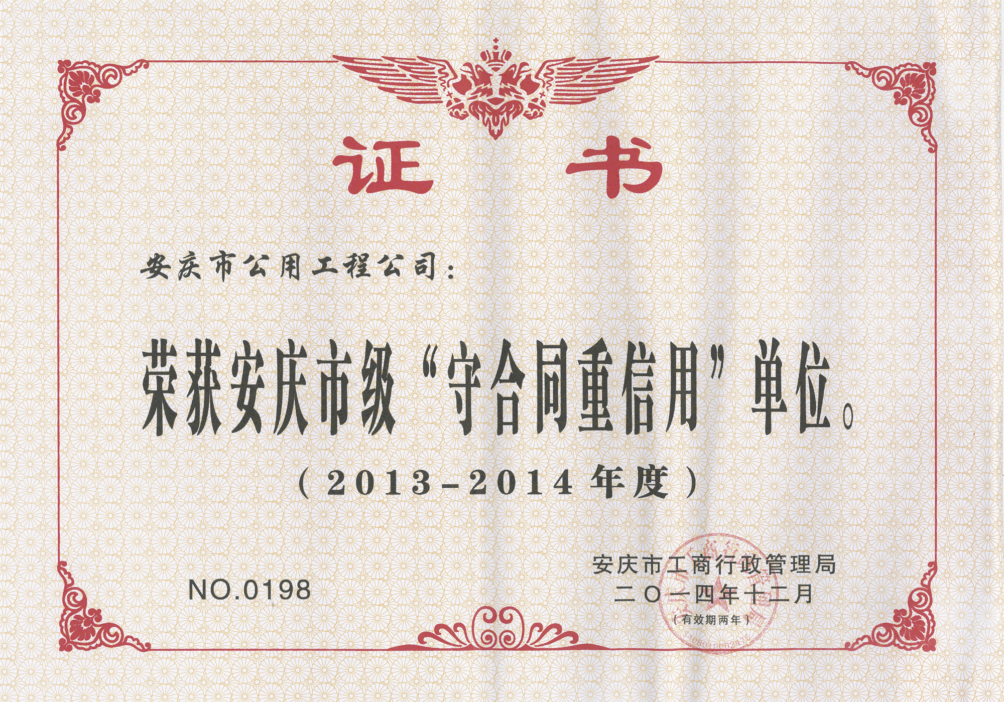 守合同重信用單位證書(shū)