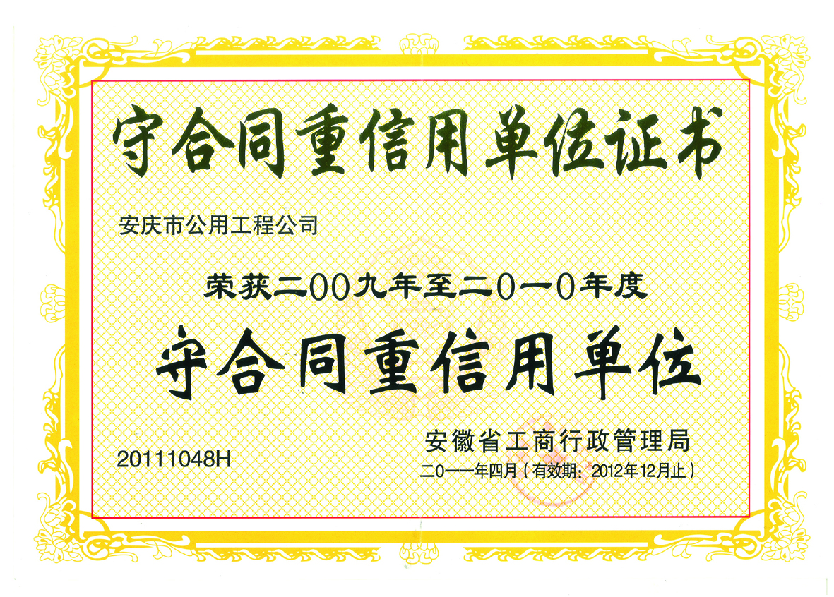 守合同重信用先進(jìn)單位證書(shū)